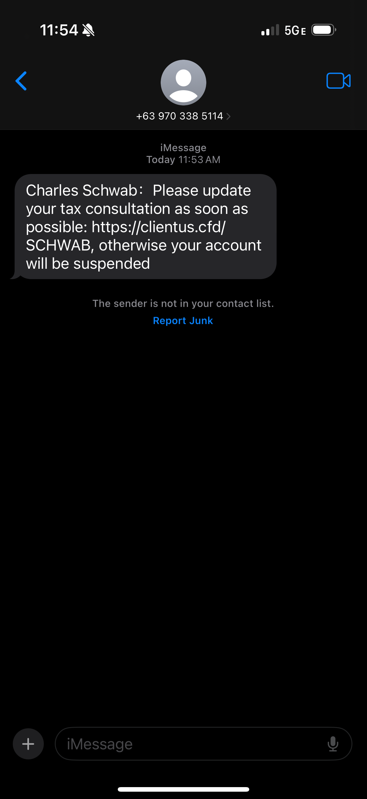 We want to alert you to a recent scam involving fraudulent text messages that appear to be from Charles Schwab. Scammers are sending messages that may look like legitimate Schwab communication, often claiming there is an issue with your account or prompting you to click a suspicious link.